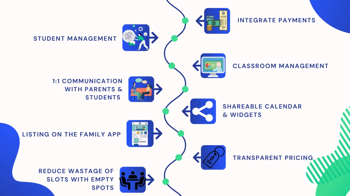 We provide a comprehensive ecosystem that connects parents and activity centers, allowing for direct communication and building meaningful relationships within the community. Twishr's Family App empowers parents to actively engage in their child's activities, while our Admin Panel streamlines operations for activity centers, creating a more interactive and holistic experience for all users.